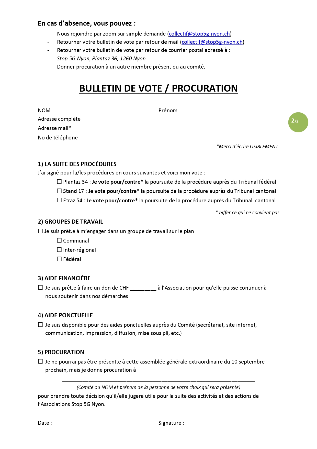 IBAN CH31 0076 7000 S565 4847 2 (Association Les Ami-e-s de Stop 5G Nyon, 1260 Nyon)